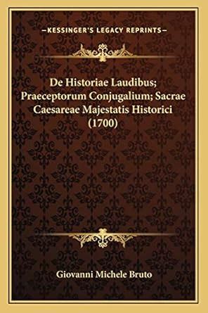Read Online De Historiae Laudibus; Praeceptorum Conjugalium; Sacrae Caesareae Majestatis Historici (1700) Paperback